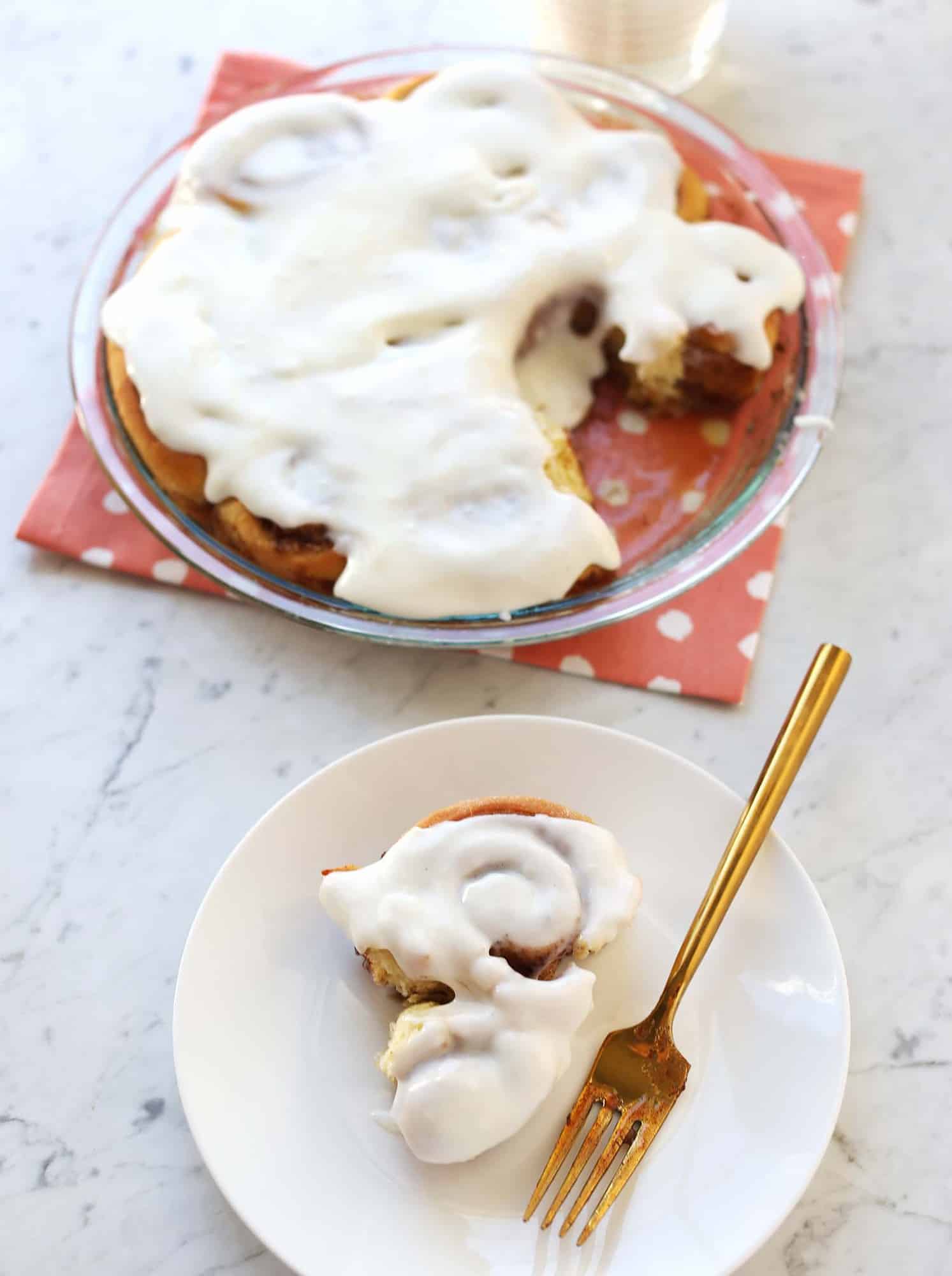 I make this recipe every holiday. It’s more work than opening a can of store bought cinnamon rolls, but less than a traditional recipe – which is to say, it’s the perfect amount of effort for when I want a special breakfast.