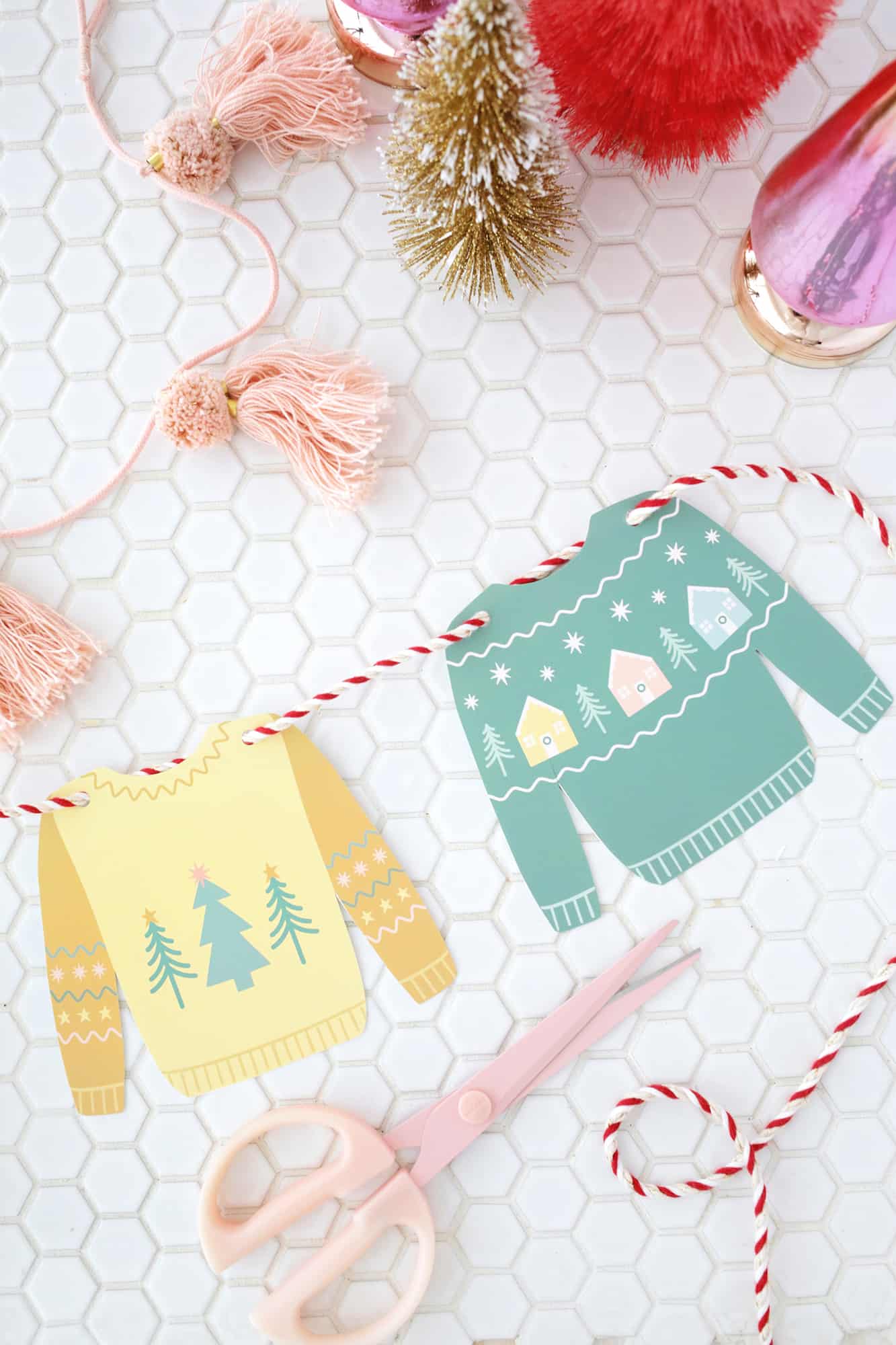 - Christmas sweater garland download (5″ wide sweaters and 3.5″ sweaters)