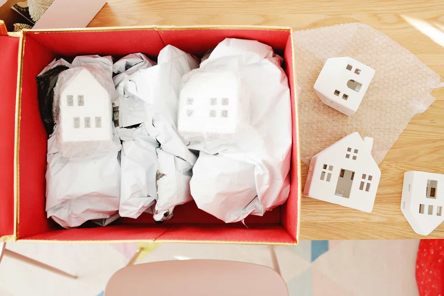 I have a growing collection of porcelain tea light houses (one of my favorite things to decorate with), so having a sturdy box like this was perfect to hold them all once they were protected with a little bubble wrap.