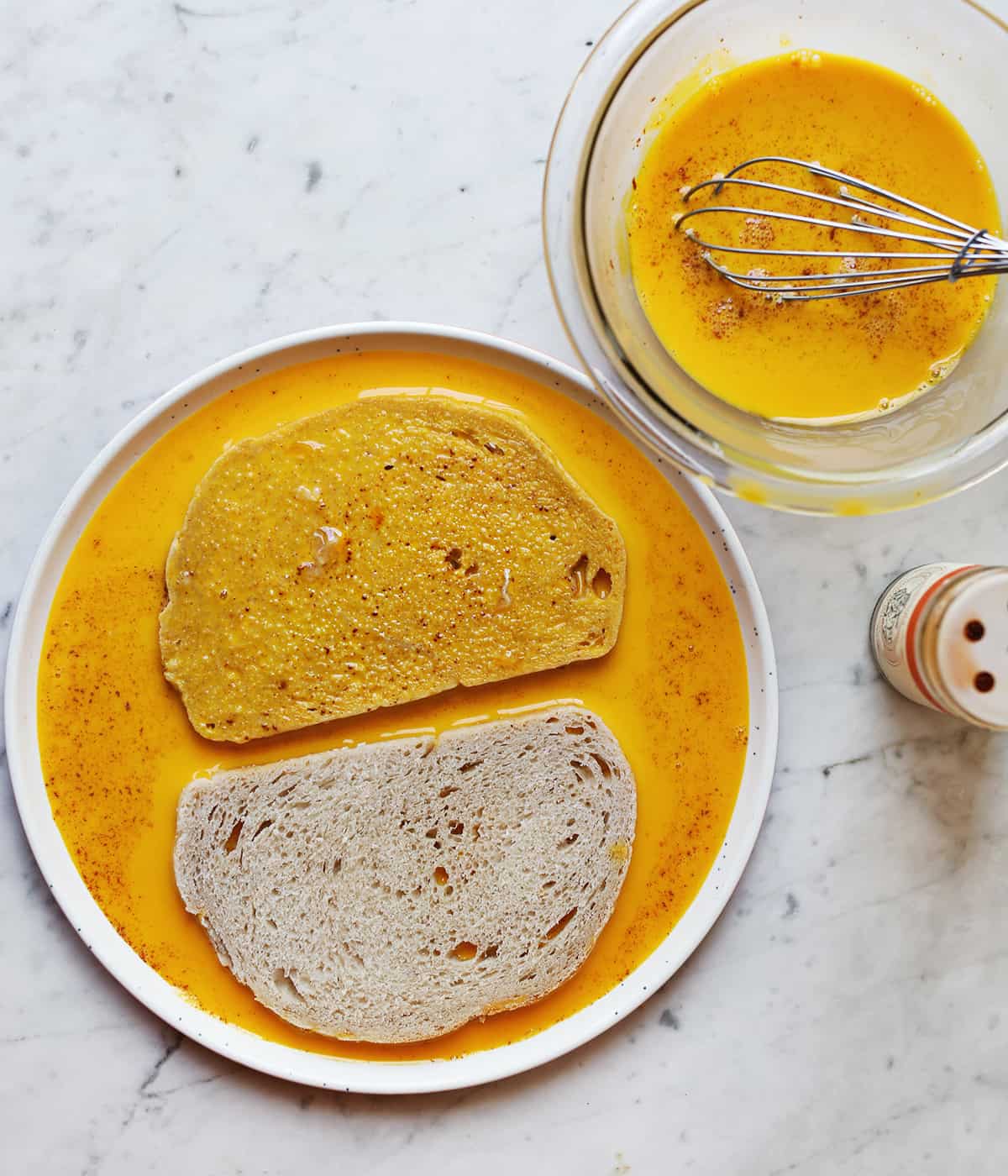 This makes things just a little bit more decadent, and it will help you avoid any thick, scrambled egg-type bits on your French toast. You could use the egg whites for another purpose, like an omelette or baked egg white bites.