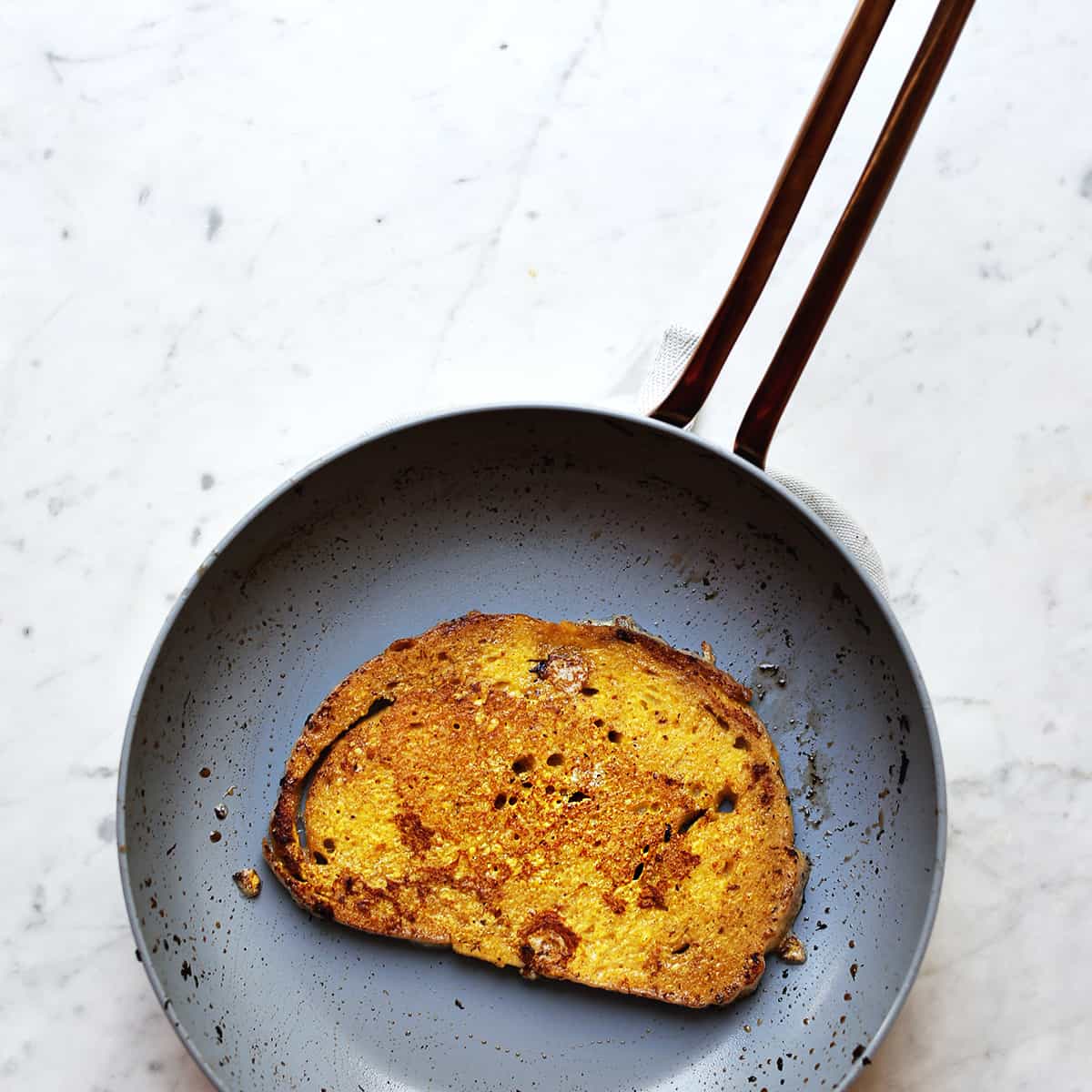 - Pan fry the bread in a little bit of butter over medium heat until browned and toasted on both sides.