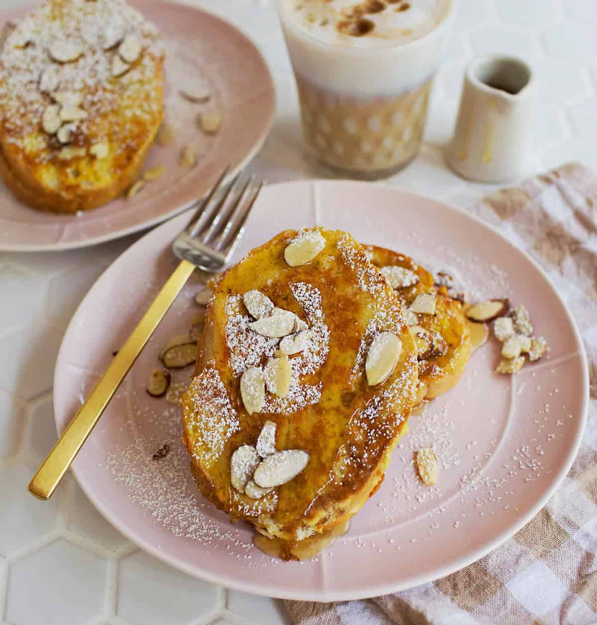 Sometimes I change things up and make stuffed French toast. Plus, here is a recipe for pumpkin and almond stuffed French toast!