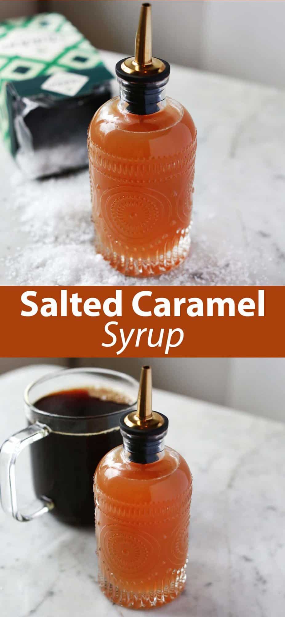This is a Starbucks copycat recipe for their salted caramel syrup. This is a thinner simple syrup, perfect for mixing into coffee or other beverages; not a thick caramel syrup for topping ice cream or other desserts. If you are in need of a homemade salted caramel syrup for your morning coffee, a latte, a mocha or even to mix into a cocktail (like an Appletini) this is it!
