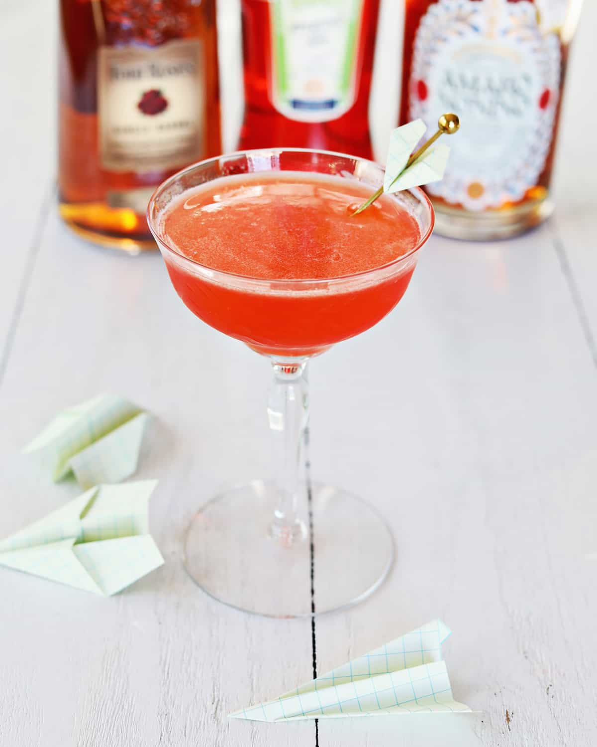 - Garnish ideas: A tiny paper plane is the most adorable garnish. Other ideas are a lemon peel or orange twist.