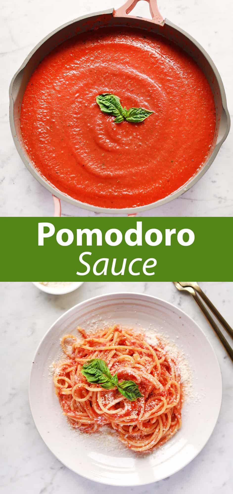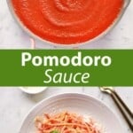Pomodoro sauce is different from marinara sauce in a few ways, but the biggest difference to me is the texture. This sauce is more uniform in texture while marinara tends to be heartier or chunkier.