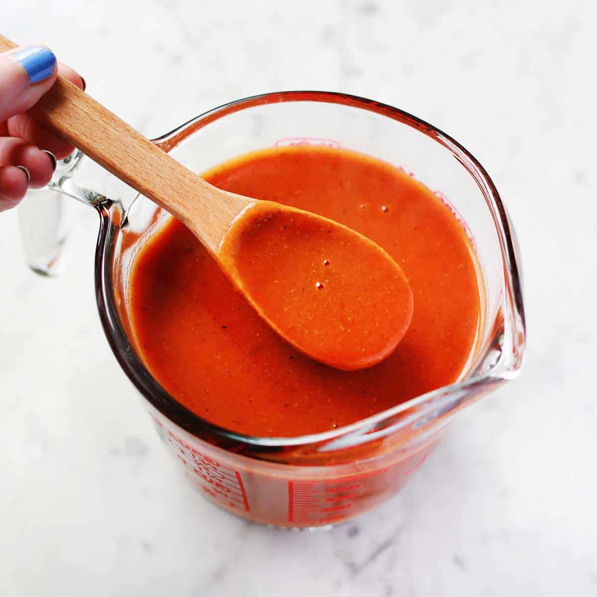 You can use this sauce right away or store in an airtight container in the refrigerator for at least five days. You could also choose to freeze this homemade enchilada sauce.
