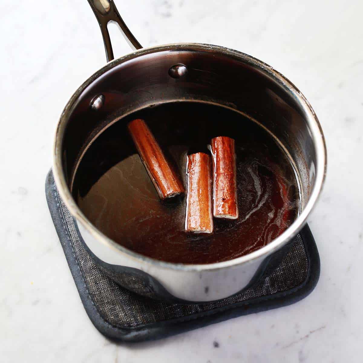 Add the cinnamon sticks and vanilla extract. Bring to boil, then reduce the heat and simmer for 10 minutes. Turn the heat off and allow to steep for another 10 minutes as the mixture cools.
