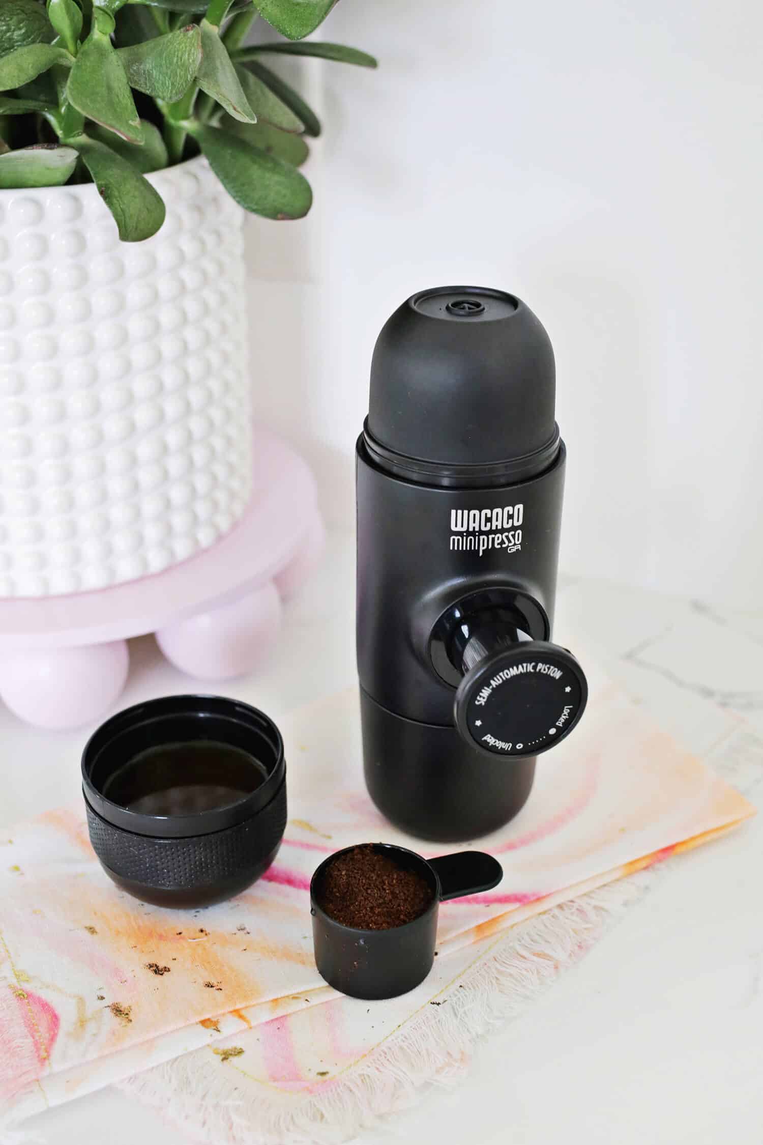 This forces the hot water through the grinds and out the other end (you can even use one of the caps as a cup on the go). While the travel feature of this machine is really cool, it’s also great for home because it’s so small and takes up way less room than an espresso machine would.