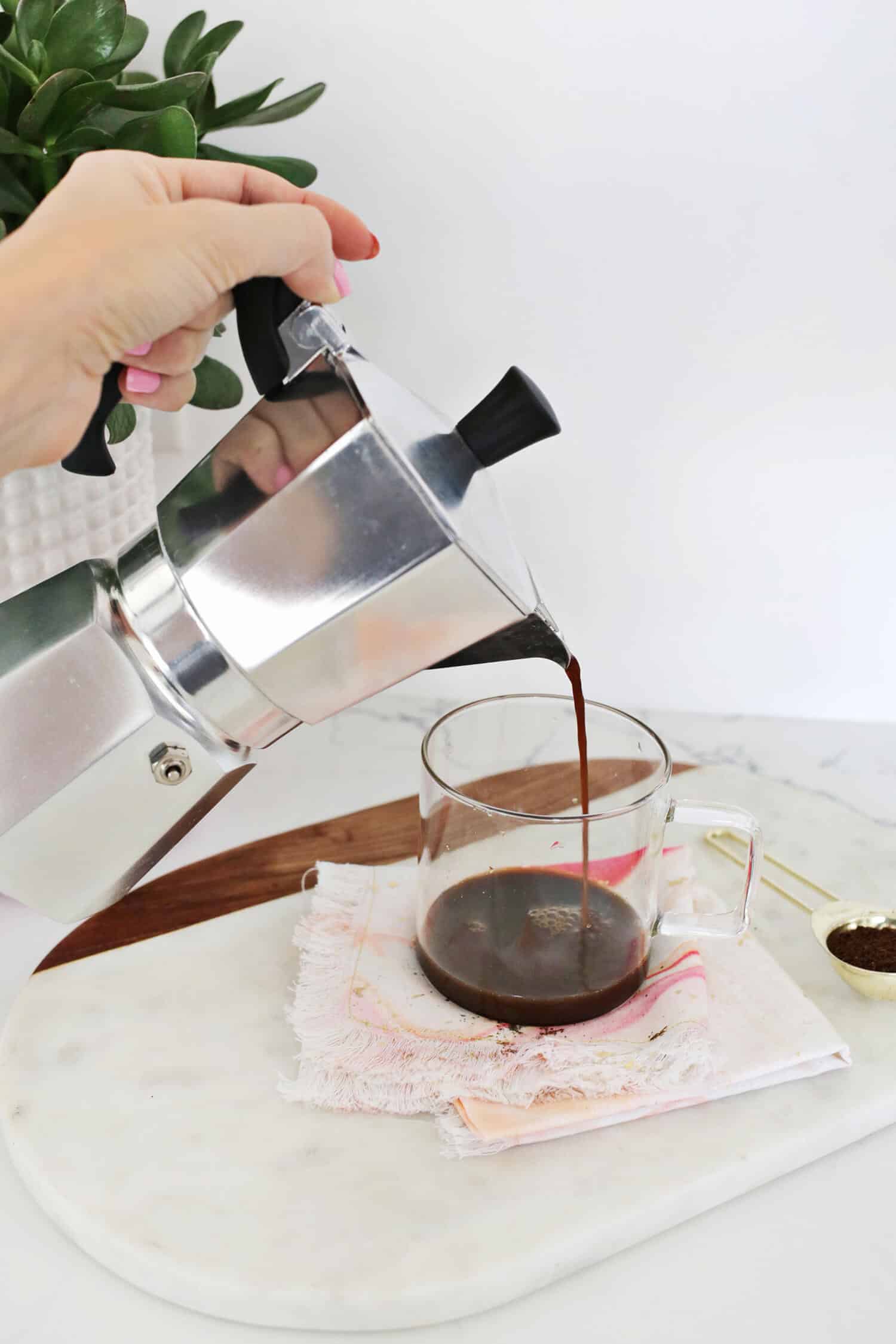 Since this method is a bit more experimental, you may need to play around a bit to find the right amount of grinds for your faux espresso. But start with doubling your grind amount and then back off or add more from there.