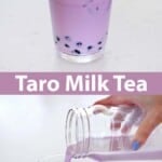 In a cup, add the boba pearls and then ice. Pour in your tea. Then pour in the taro milk. Taste and stir in more sweetener if you feel it needs it.