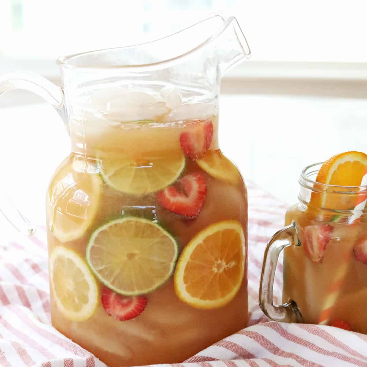 I love a refreshing drink like homemade fruit punch! Even though I consider myself a cocktail queen, I love to serve an array of beverages without alcohol at my gatherings. This homemade fruit punch recipe is easy to create in just five minutes. It’s perfect for your next celebration!