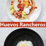Huevos Rancheros, also called Rancher’s eggs, is a light breakfast option usually consisting of fried eggs over corn tortillas topped with salsa or pico de gallo. The reason I think of this as a light breakfast is because traditionally it was served as a second breakfast to ranchers after they would come back from working in the early morning.