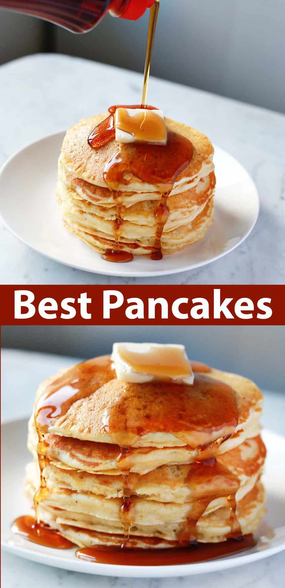 If you are looking for the best pancake recipe, this is it! These homemade pancakes are fluffy, sweet, and buttery. And I must give credit where credit is due because this recipe has been perfected by my husband, who is the pancake maker at our house.