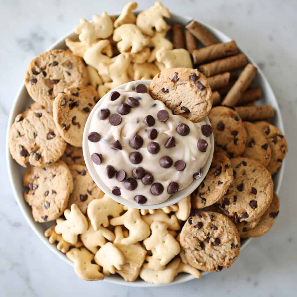 A no-bake chocolate chip cookie dough dip recipe. Bonus: It’s healthier than it looks!