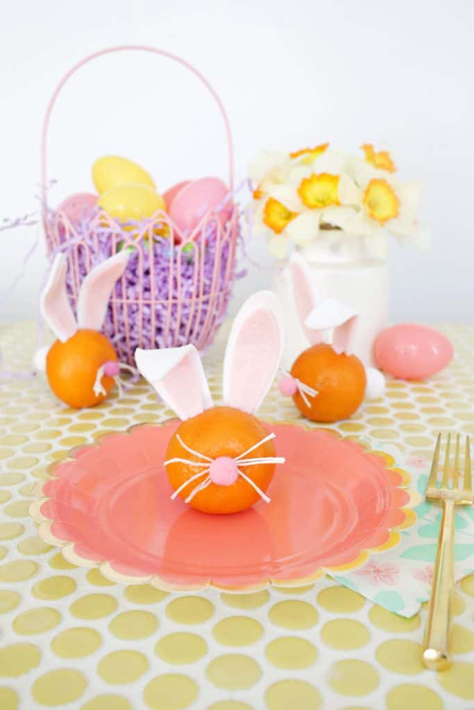 Make this cute Easter bunny from oranges for your kids’ tablescape.