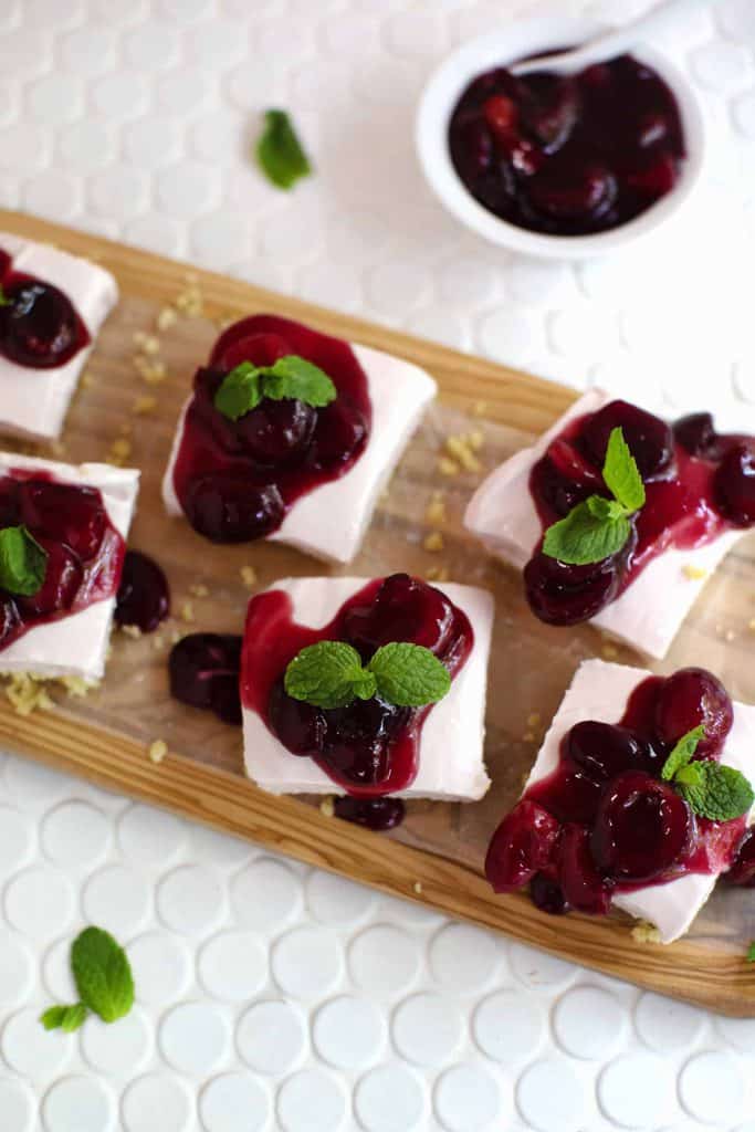 Learn to make delicious no-bake cherry cheesecake at home! The total prep time for the recipe is about two and a half hours.