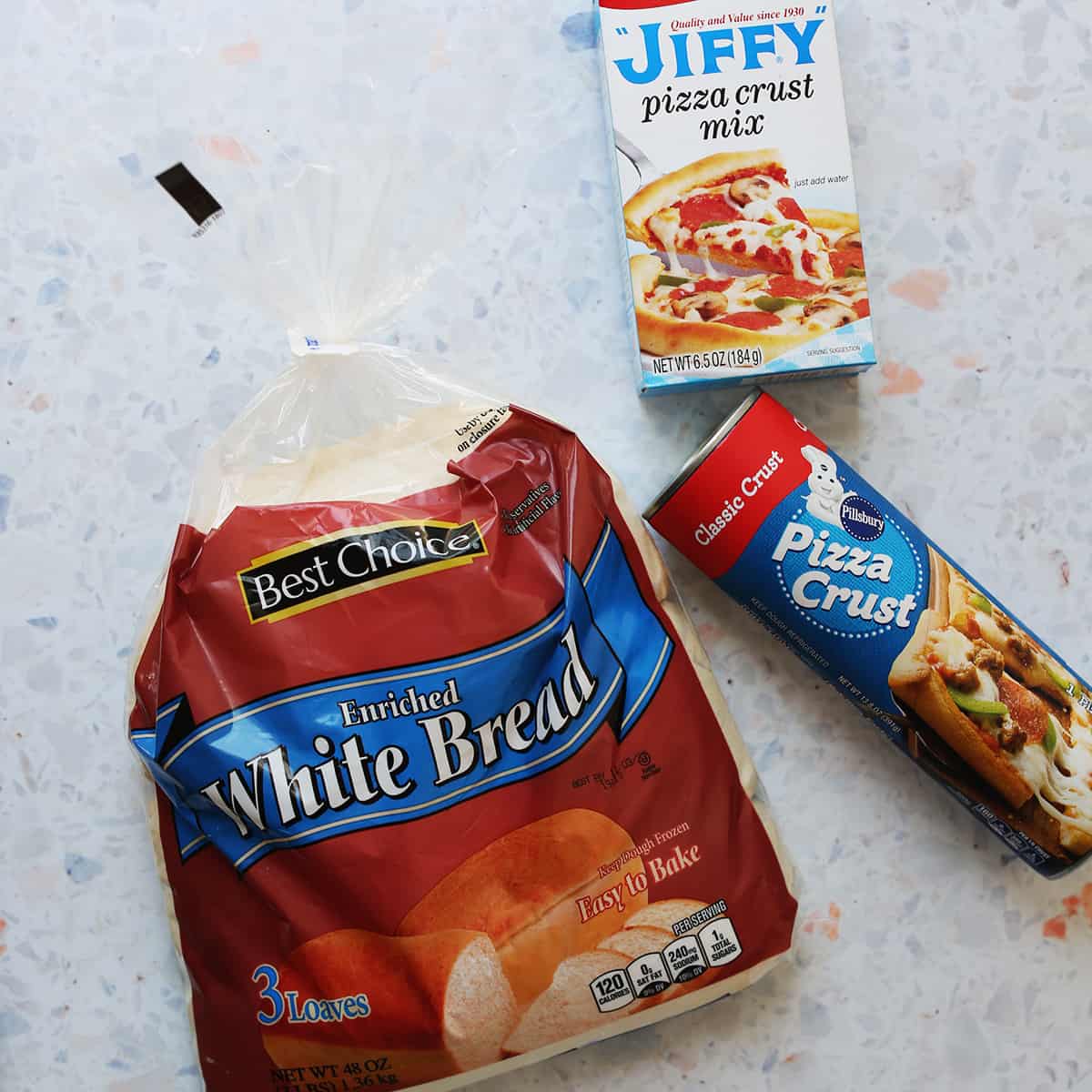 - Dry pizza crust mix (like Jiffy) – Although this will work and is the most shelf-stable option, it can make your calzone crust kind of thin and dry.
