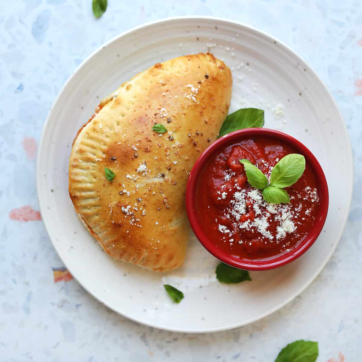 Another key to great calzone is you should serve it alongside dipping sauce—preferably marinara. Whatever red sauce you use inside the calzone can be served for dipping, so you don’t necessary have to make or buy two different sauces unless you want to.