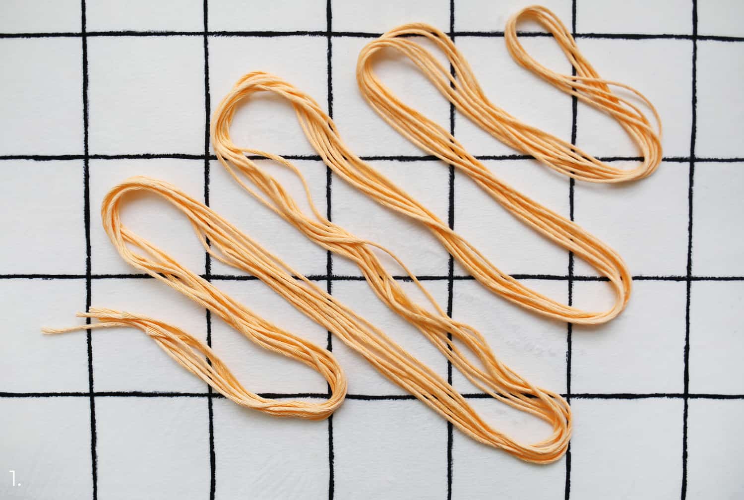 If you’re making the wristlet camera strap, cut four 9′ lengths of 2 mm cotton and set the rest aside.