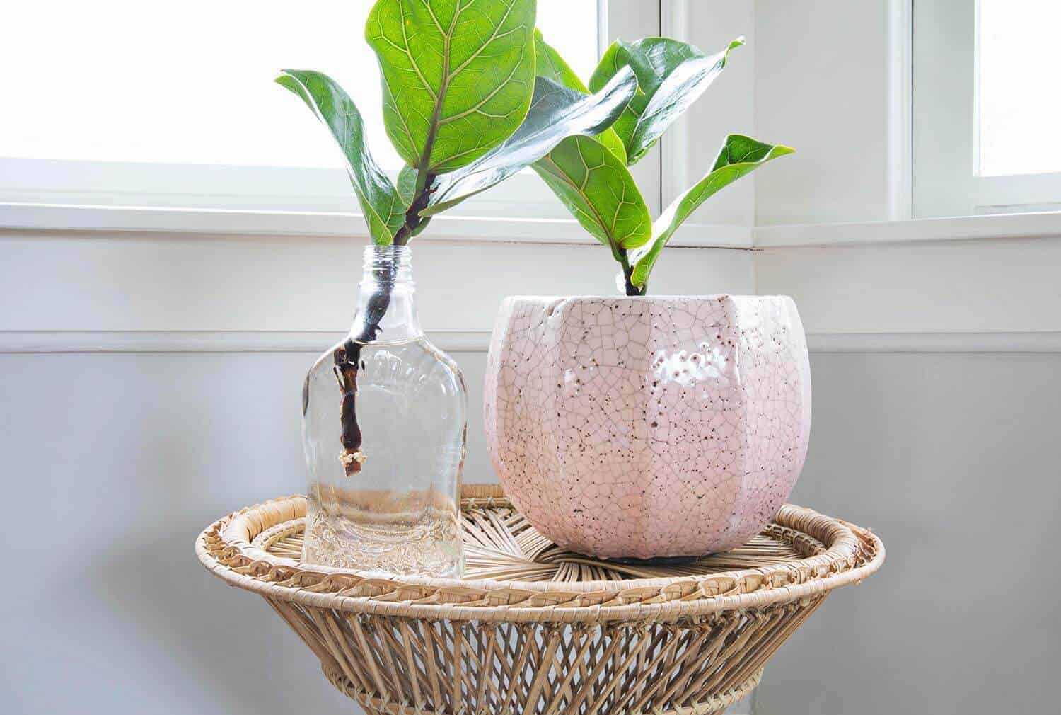 Did you know you can make new fiddle leaf babies from cutting a branch off of your tree? I love this about the fiddle leaf tree. It’s the plant that keeps on giving! Pruning your tree will promote horizontal growth. The tree will actually grow more when you prune it.