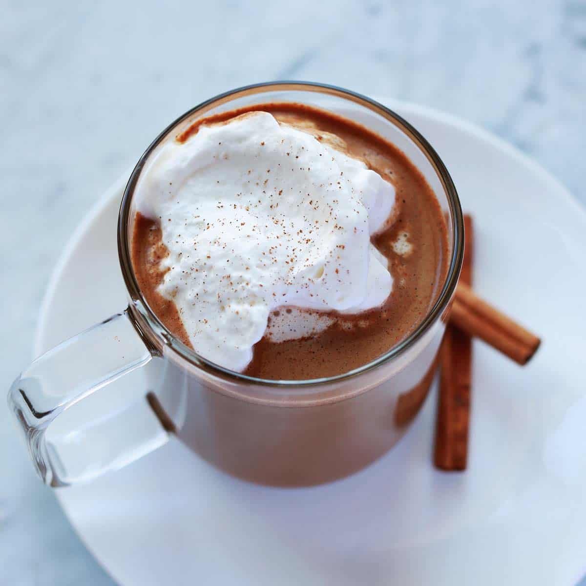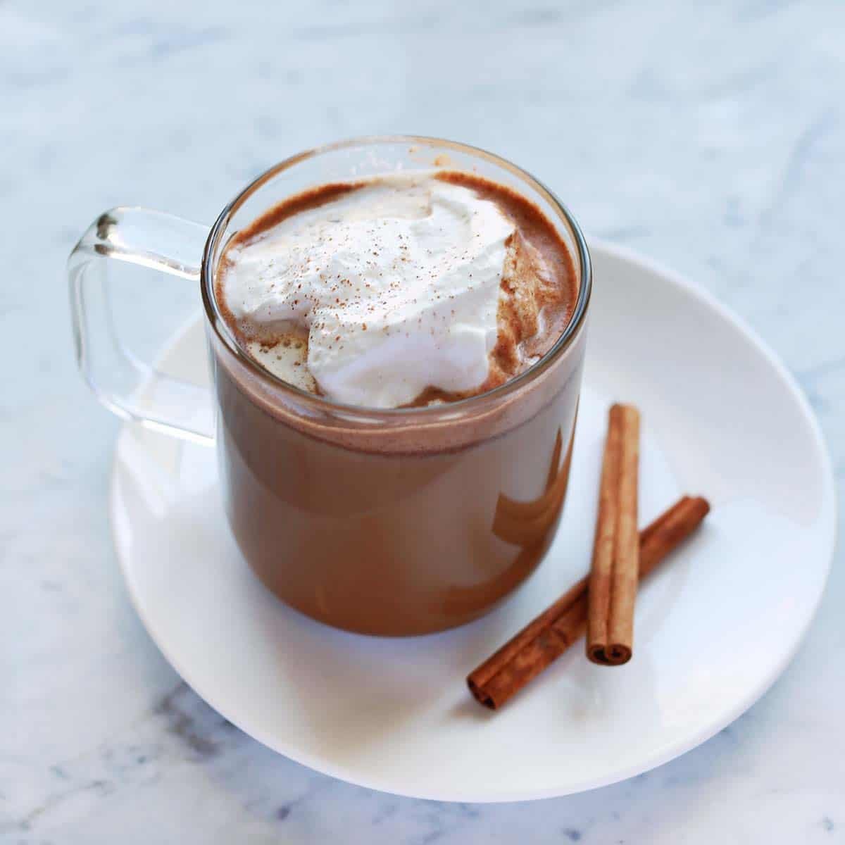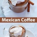 Traditional Mexican coffee, or Café de Olla, is made with coffee, cinnamon and raw dark sugar (find a great recipe here). You can also make a Mexican coffee cocktail that includes coffee liqueur and tequila. But this version is alcohol-free and more on the chocolate side. This Mexican coffee recipe is great for an afternoon pick-me-up or a sweeter morning coffee drink.