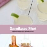 If you don’t like shots and prefer to sip, here’s how to change this recipe into a cocktail. A Kamikaze drink is essentially a vodka margarita. It’s sweet, tart and easy to drink. Keep the recipe exactly the same, but increase the lime juice to 1 full ounce. Serve in a martini glass.
