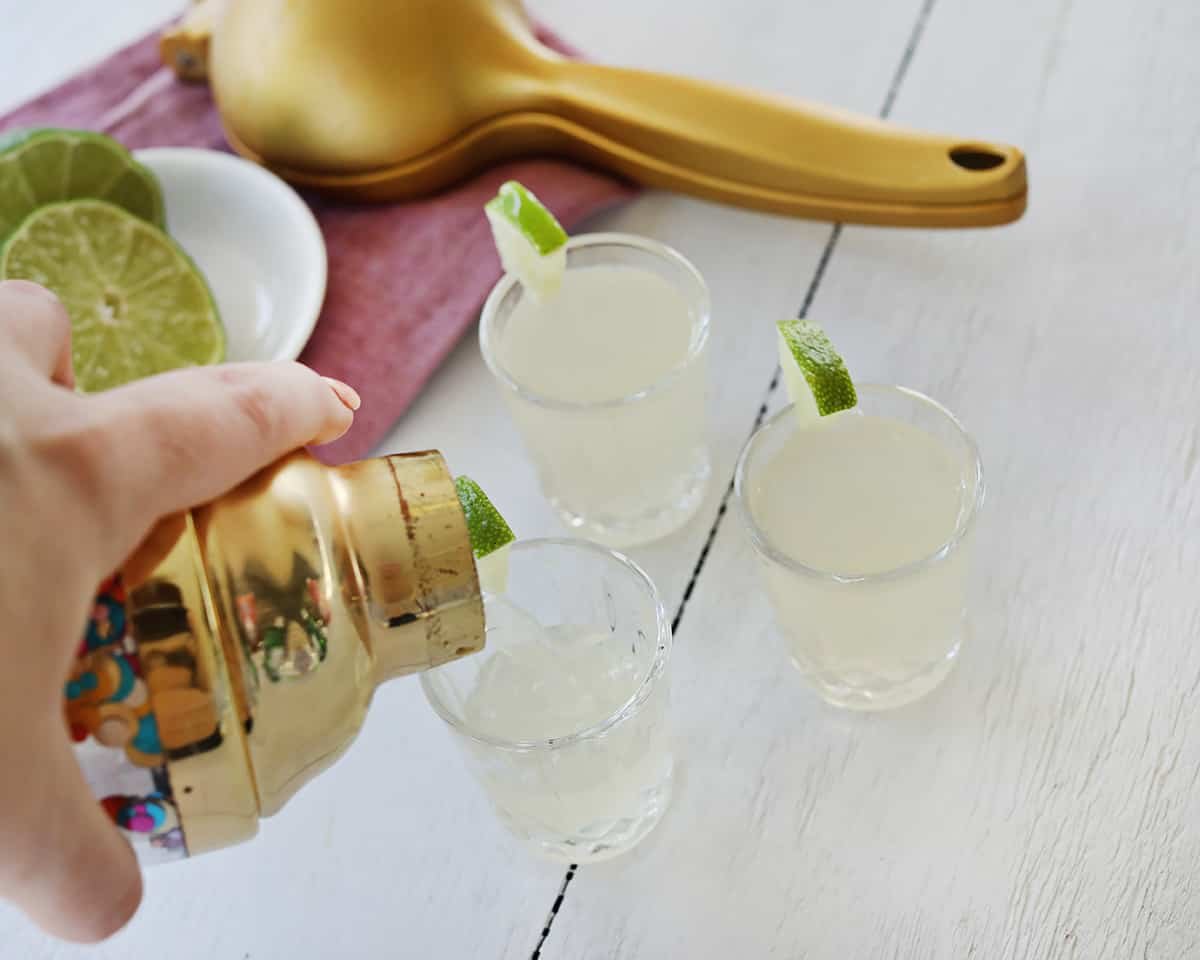 Here’s a link to the exact shot glasses I used. I love this cocktail shaker as well.