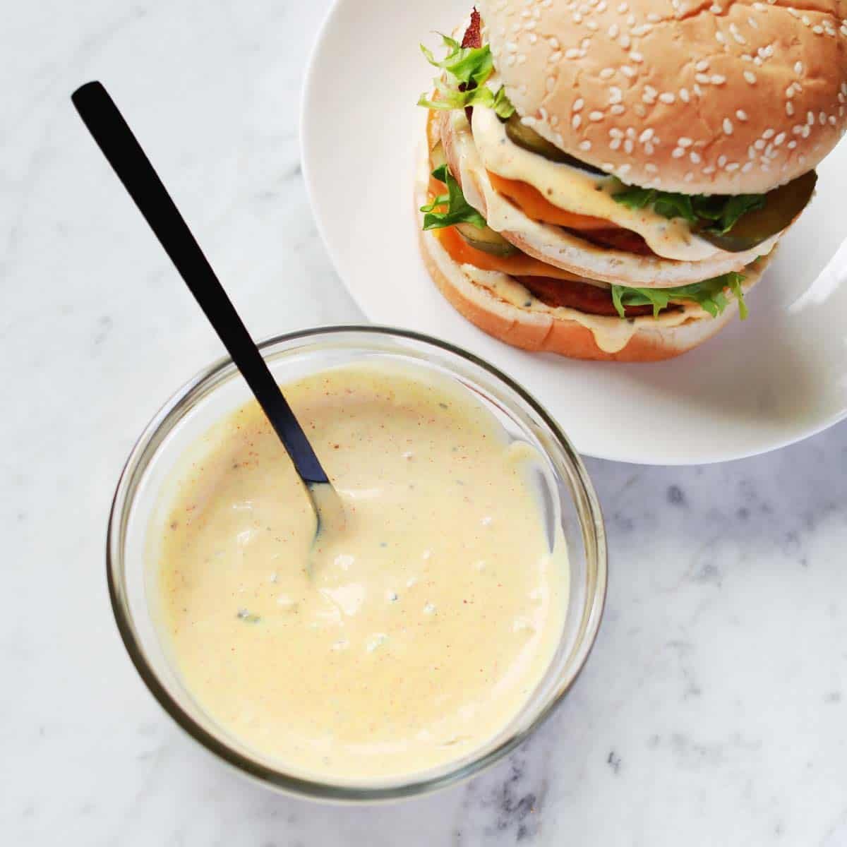 I made this last night for my family and my husband and kids loved it! I used vegan mayo. My family will always want this sauce with burgers now. It made hamburgers at home seem fancy! ha.