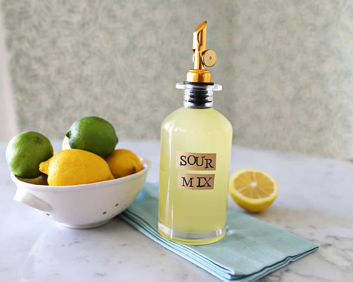 After today, you will never buy sour mix again! Making your own homemade sweet and sour mix is easy to do and so worth it. It’s much more delicious than store bought mix and you can whip up a batch in your kitchen with a few ingredients.
