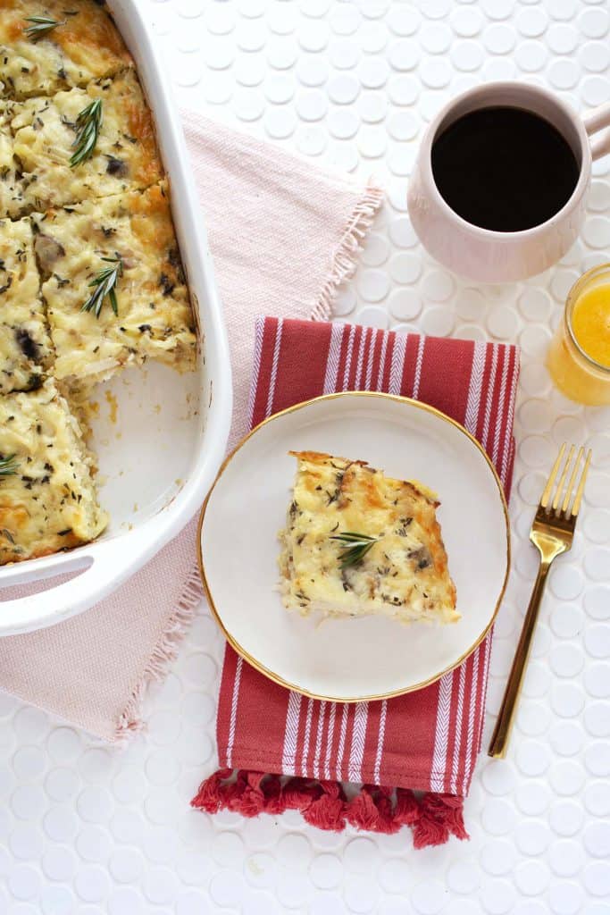 A simple five-ingredient casserole with frozen tater tots on top. This brunch recipe can be prepped the night before.